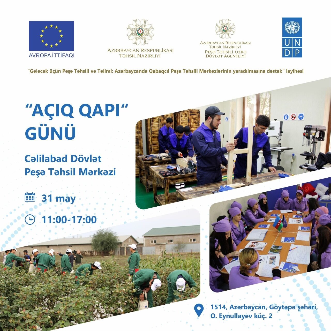 Avropa İttifaqı (Aİ), Birləşmiş Millətlər Təşkilatının İnkişaf Proqramı (BMTİP) və Peşə Təhsili üzrə Dövlət Agentliyi Gəncə, Cəlilabad və Şəkidə yerləşən bir sıra peşə təhsil mərkəzləri üçün “açıq qapı” günlərinin keçirilməsinə start verib.