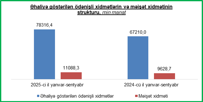 2025-ci ilin yanvar-sentyabr aylarında əhaliyə göstərilən ödənişli xidmətlər