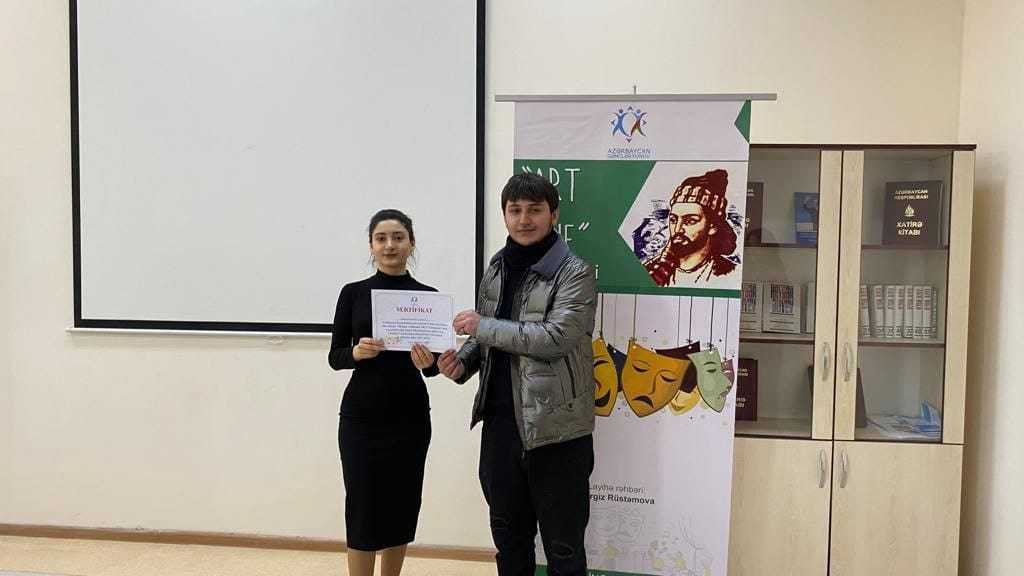 LİNE” layihəsinin rəhbəri Mingəçevir Dövlət Universitetinin (MDU) tələbəsi Nərgiz Rüstəmova layihənin faydalılığından danışıb. Tələbələrin asudə vaxtlarını səmərəli keçirmələrini təmin etmək həmçinin, onların yaradıcılıq fəaliyyətini inkişaf etdirmək, dil biliklərini, natiqlik qabiliyyətlərini və özünü ifadə bacarıqlarını yüksəltmək məqsədi ilə hazırlanan layihənin məqsədinə çatdığını bildirib. Belə ki, layihəyə cəlb olunan gənclər bir neçə bədii əsərləri birlikdə mütaliyə edərək bir neçə əsələri səhnələşdirməyi planlaşdırdığını qeyd edib. N. Rüstəmova layihənin davamlılığı olaraq gənclərin aprel, may aylarında iki tamaşanı səhnələşdirmək üçün məşqlərini davam etdirdiklərini bildirib.