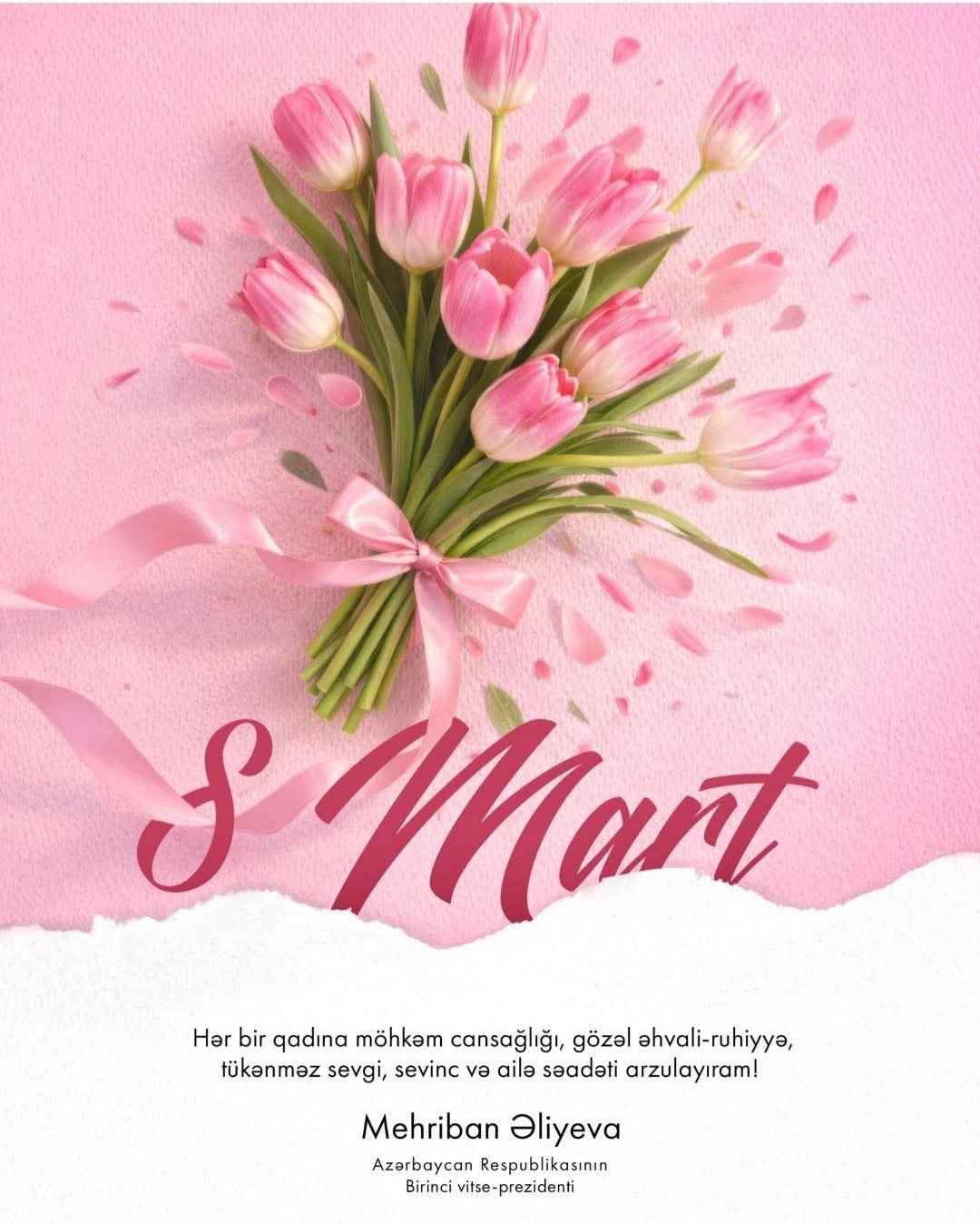 “Hər bir qadına möhkəm cansağlığı, gözəl əhvali-ruhiyyə, tükənməz sevgi, sevinc və ailə səadəti arzulayıram!”