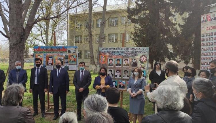 Mingəçevir şəhər Təhsil Şöbəsi və Uşaq-Gənclər İnkişaf Mərkəzinin təşəbbüsü ilə orta məktəblərin həyətyani sahələrində şəhidlərin adlarını əbədiləşdirmək məqsədilə keçirilən ağacəkmə aksiyası aprelin 7-də 16 saylı məktəbdə davam edib. Məktəbin direktoru Sevinc Həsənova deyib ki, əkilən ağaclara Qələbə simvoluna çevrilən Xarı bülbül emblemi bağlanıb: “Vətən savaşında, minlərlə şəhid verdik. Düşmənə boyun əyməyən şəhidlərimizin adlarını bu və ya digər formada əbədiləşdirmək bizim borcumuzdur. Məqsədimiz vətən oğullarının igidlik dastanını daha dərindən öyrənmək və gələcək nəsillərə çatdırmaqdır”.