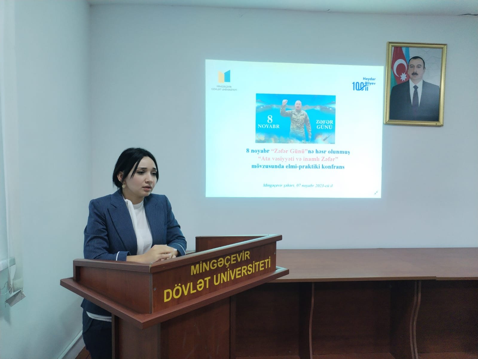 2023-cü ilin noyabrın 7-də Mingəçevir Dövlət Universitetində (MDU) “Heydər Əliyev İli” çərçivəsində Zəfər Gününə həsr edilmiş “Ata vəsiyyəti və inamlı zəfər” mövzusunda elmi-praktiki konfrans keçirilib. Tədbirdə MDU-nun professor-müəllim heyəti üzvləri, tələbə və magsitrantlar iştirak edib.