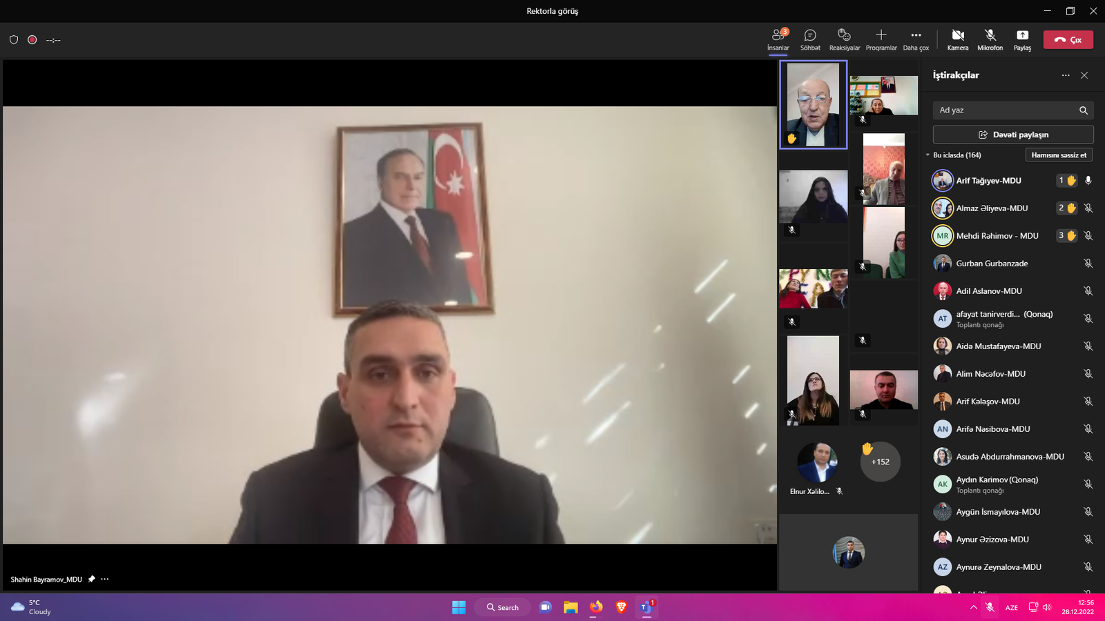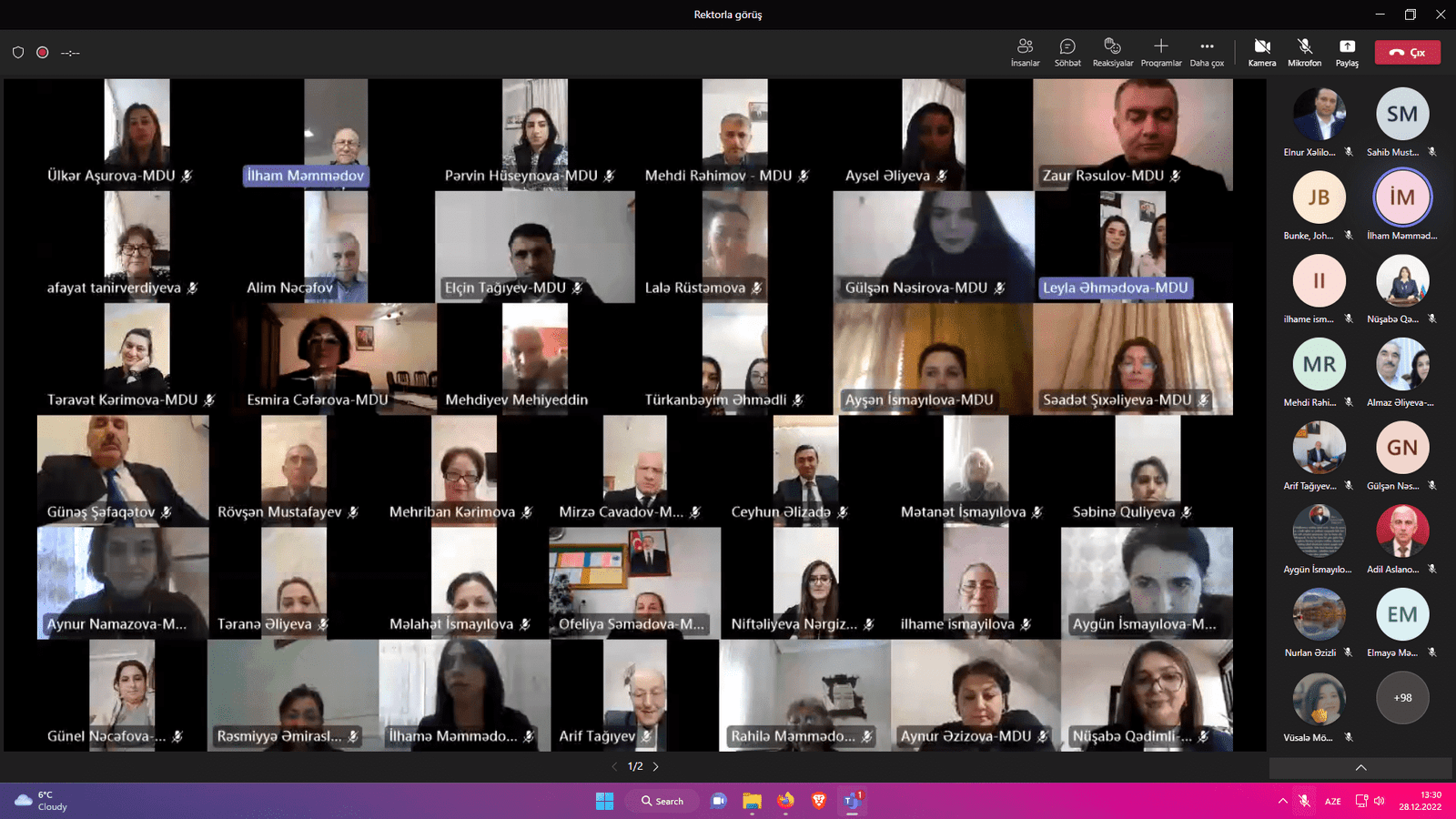 Görüş iştirakçılarına bayram təbriklərini çatdıran MDU-nun rektoru Ş.Bayramov Azərbaycan Respublikası Prezidentinin müvafiq Sərəncamına əsasən ölkəmizdə “Şuşa İli” elan edilən 2022-ci ilin əlamətdar hadisələrlə yadda qaldığını vurğulayıb.