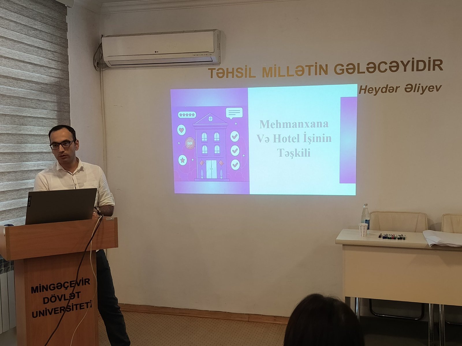 2024-cü ilin 23 sentyabrında Mingəçevir Dövlət Universitetinin (MDU) Təcrübə və karyera inkişafı mərkəzinin təşkilatçılığı ilə “Hotel və mehmanxana işinin təşkili” mövzusunda seminar keçirilib. Seminarda universitetin bir qrup professor-müəllim heyəti üzvü və turizm ixtisasları üzrə təhsil alan tələbələri iştirak edib.