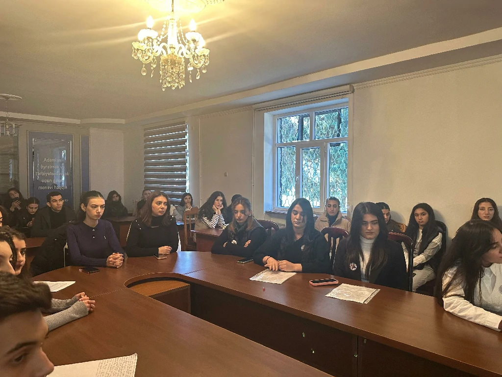 2024-cü il noyabrın 6-da Mingəçevir Dövlət Universitetində “ZƏFƏR Günü”nə həsr olunan “Zəfərin zirvəsinə aparan qəhrəmanlıq salnaməsi” mövzusunda dəyirmi masa keçirilib. Universitetin Humanitar fənlər kafedrasının təşkilatçılığı ilə keçirilən dəyirmi masada MDU-nun bir qrup professor-müəllim heyəti üzvləri, Təhsil fakültəsinin tələbə və magistrantları iştirak edib. İlk növbədə, torpaqlarımızın azadlığı uğrunda canından keçmiş qəhrəman şəhidlərimizin əziz xatirəsi bir dəqiqəlik sükutla yad edilib. Açılış nitqi ilə çıxış edən MDU-nun Humanitar fənlər kafedrasının müdiri, dosent Esmira Cəfərova qeyd edib ki, bir neçə gündən sonra xalqımız şərəfli tarixini – Zəfər gününü qeyd edəcək. Dünyaya, düşmənə məğrur və yenilməz xalq olduğunu sübut edən, Azərbaycan Respublikasının Prezidenti, Ali Baş Komandan İlham Əliyevin rəhbərliyi altında qırx dörd gün davam edən hərbi əməliyyatlar nəticəsində Ermənistanın 30 il ərzində formalaşdırdığı silahlı qüvvələr darmadağın edilərək işğala son qoyuldu. Döyüşdən qorxub qaçan erməni silahlılarının Azərbaycan əsgəri qarşısında məğlub olduğunu bütün dünya gördü. Müzəffər Ali Baş Komandanın əmri ilə Azərbaycan əsgəri düşmənin işğal edilmiş ərazilərdə 30 il müddətində tikdiyi istehkamları yarır, qurduğu pusquları dağıdır və hədəfə yaxınlaşırdı. Əks-hücum əməliyyatında ordumuzun qarşısında duran əsas tapşırıq çətin relyef və iqlim şəraitində mütəşəkkil qaydada irəliləmək və işğal altında olan torpaqlarımızı cinayətkar ordu qruplaşmalarından xilas etmək idi və etdi də. Noyabr ayının 8-də Şuşa şəhəri azad edildi. Noyabrın 10-da Azərbaycan Prezidenti, Rusiya Prezidenti və Ermənistan baş nazirinin birgə bəyanatı imzalandı. “Dəmir yumruğ”un gücünə imzalanan bəyanata əsasən, 10 noyabr 2020-ci il tarixində Moskva vaxtı ilə saat 00.00-dan etibarən, Dağlıq Qarabağ münaqişəsi zonasında atəşin və bütün hərbi əməliyyatların tam dayandırılması elan olundu. Ölkəmizin tarixi qələbəsi, münaqişənin həlli regionun yenidən çiçəklənməsinə böyük stimuldur. Cənab Prezidentin də qeyd etdiyi kimi, bizə maksimum sərf edən sənəd imzalanıb. Bu nəticənin əldə olunmasında başda Müzəffər Ali Baş Komandan olmaqla, bütün ordumuzun və hərbi əməliyyatlar dövründə birlik, həmrəylik nümayiş etdirən xalqımızın hər bir nümayəndəsinin rolu oldu. Biz böyük ZƏFƏRİ əldə etdik.