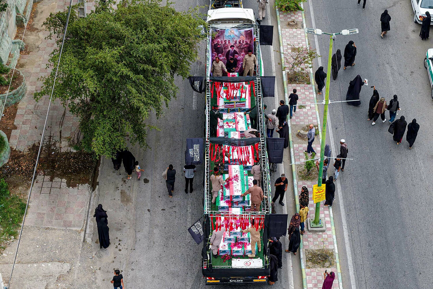 Şəhərdə keçirilən vida mərasimində minlərlə insan küçələrə axışıb. İran bayraqlarına və həyatını itirən qızların şəkillərinə bükülmüş kiçik tabutlar izdihamın çiyinlərində daşınıb. Qara çadra geyinmiş qadınlar yas mərasimində səssiz şəkildə cərgələrdə dayanaraq həlak olanların xatirəsini yad ediblər.