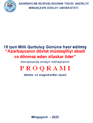 2022-ci ilin 14 iyun tarixində Mingəçevir Dövlət Universitetində (MDU) Milli Qurtuluş Gününə həsr edilən “Azərbaycanın dövlət müstəqilliyini əbədi və dönməz edən xilaskar lider” mövzusunda mühazirə keçirilib. “Microsoft Teams” platforması üzərindən onlayn formatda təşkil edilən mühazirədə MDU-nun akademik və inzibati heyət üzvləri, tələbə və magistrantlar iştirak ediblər.
