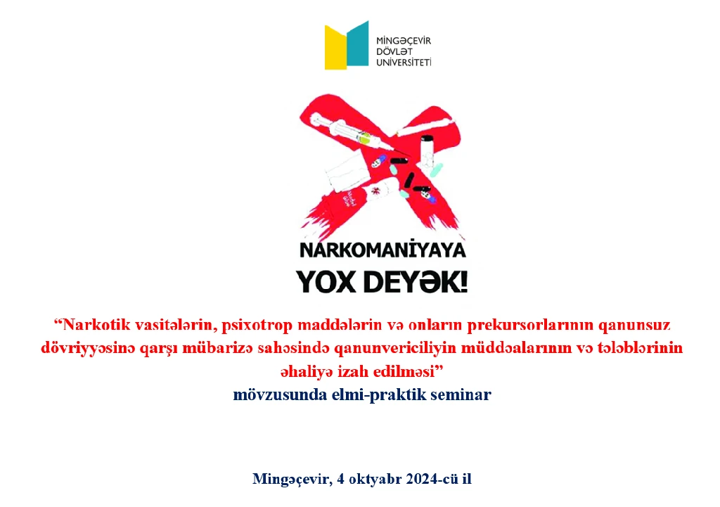 Seminarın moderatoru, Mingəçevir Dövlət Universitetinin (MDU) Elm və İnnovasiyalar şöbəsinin müdiri dosent Vüqar Mustafayev narkotik maddələrin insan sağlamlığına və mənəviyyatına vurduğu zərərlər, bu maddələrin qanunsuz dövriyyəsinin qarşısının alınması üçün hüquqi tədbirlərin və vətəndaşların rolu, eləcə də narkotik asılılıqdan çıxış yolları haqqında danışıb, cəmiyyətin bu bəla ilə mübarizədə birgə səylərinin vacibliyini vurğulayıb. Sonra məruzələr dinlənilib.