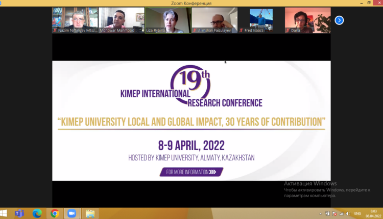 Mingəçevir Dövlət Universiteti (MDU) 2022-ci ilin 8-9 aprel tarixlərində Qazaxıstan Respublikasının KIMEP Universitetində onlayn formatda təşkil edilmiş 19-cu KIMEP Beynəlxalq Tədqiqat Konfransında təmsil olunub. “KIMEP Universitetinin 30 illiyi: lokal və qlobal təsir” mövzusunda keçirilən beynəlxalq konfransda 5 ölkənin 11 ali məktəbindən 60-a yaxın tədqiqatçının məruzələri dinlənilib.