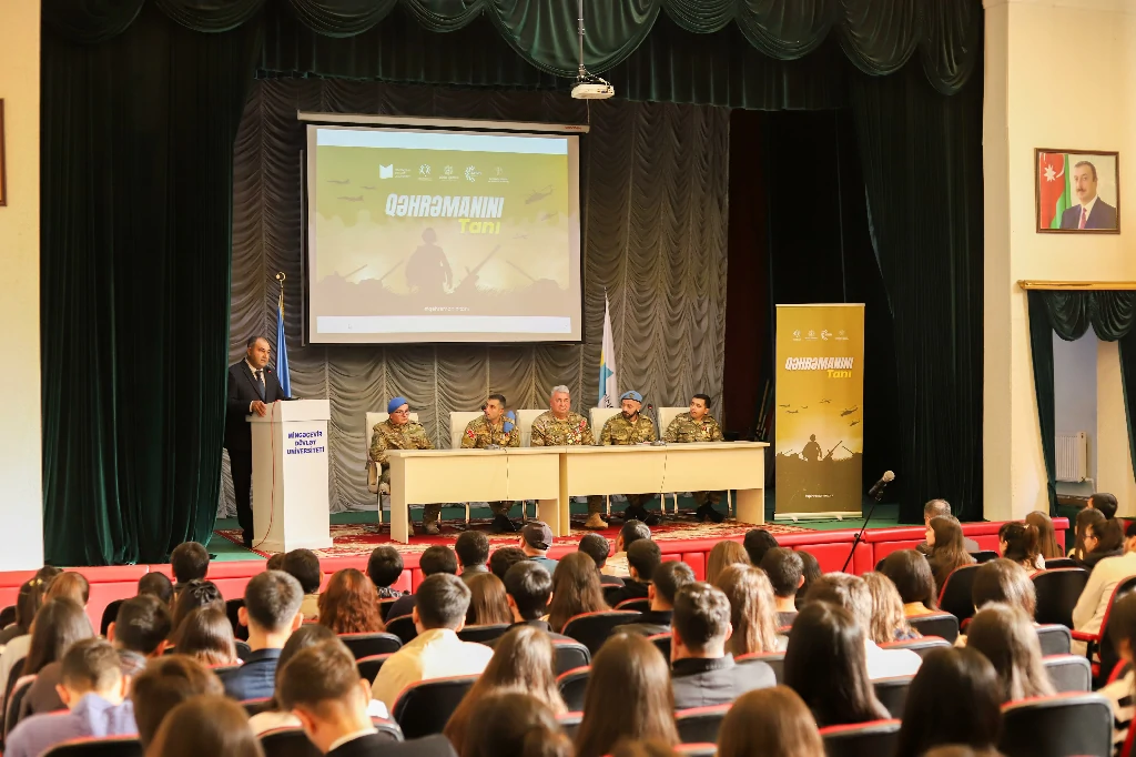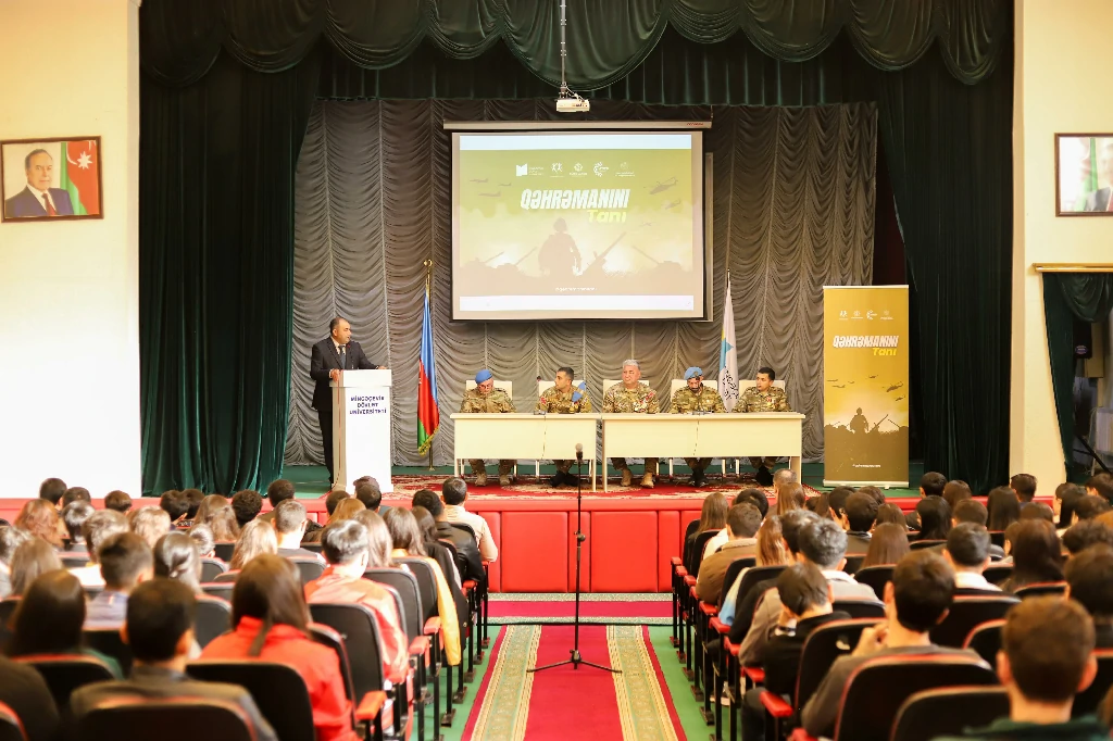 Mingəçevir Dövlət Universitetində “8 noyabr Zəfər Günü” nə həsr olunmuş “Qəhrəmanını Tanı” layihəsi çərçivəsində tədbir keçirilib. Azərbaycan Respublikasının Gənclər Fondunun dəstəyi, “Böyük Qayıdış” Gənclər Təşkilatı, Azərbaycan Tələbə Gənclər Təşkilatları İttifaqı və Gənclərin İnkişaf və Karyera Mərkəzinin birgə təşkilatçılığı ilə keçirilən tədbir, vətən uğrunda qəhrəmanlıq göstərən şəhidlərimizi və qazilərimizi tanıdaraq, gələcək nəsillərə tanıtmağı hədəfləyib.