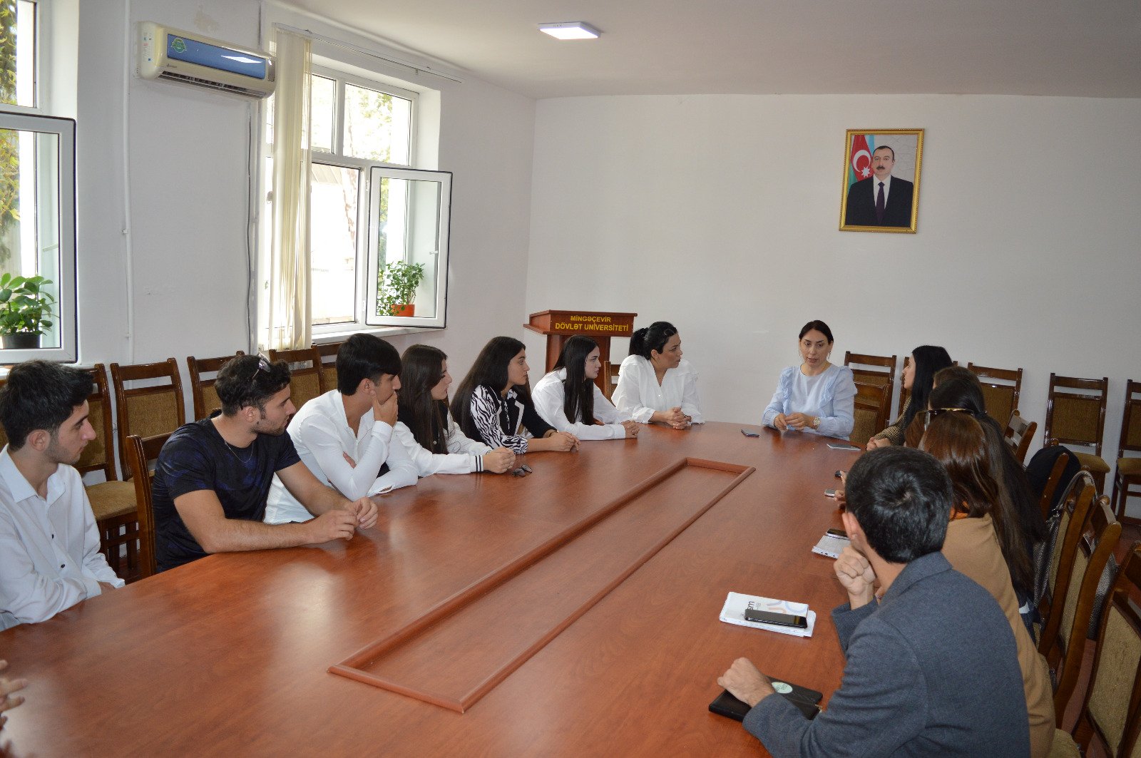 Mingəçevir Dövlət Universitetinin (MDU) Tələbələrlə iş və tədbirlərin təşkili şöbəsi və Tələbə Gənclər Təşkilatı (TGT) tərəfindən tələbələrin maarifləndirilməsi üçün silsilə görüşlər təşkil olunub. Bu məqsədlə keçirilən tədbirlərdə universitetin müxtəlif fakültələrində təhsil alan tələbələr bir araya gəliblər. Görüşdə özəlliklə tələbələrin universitet həyatı, eləcə də şəxsi və peşəkar inkşaf istiqamətləri müzakirə olunub.