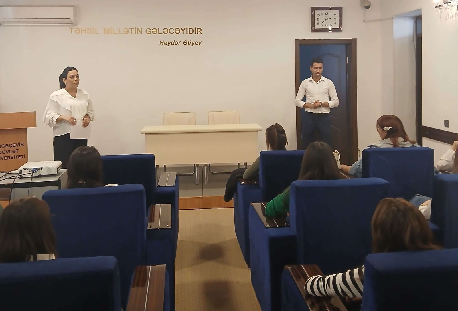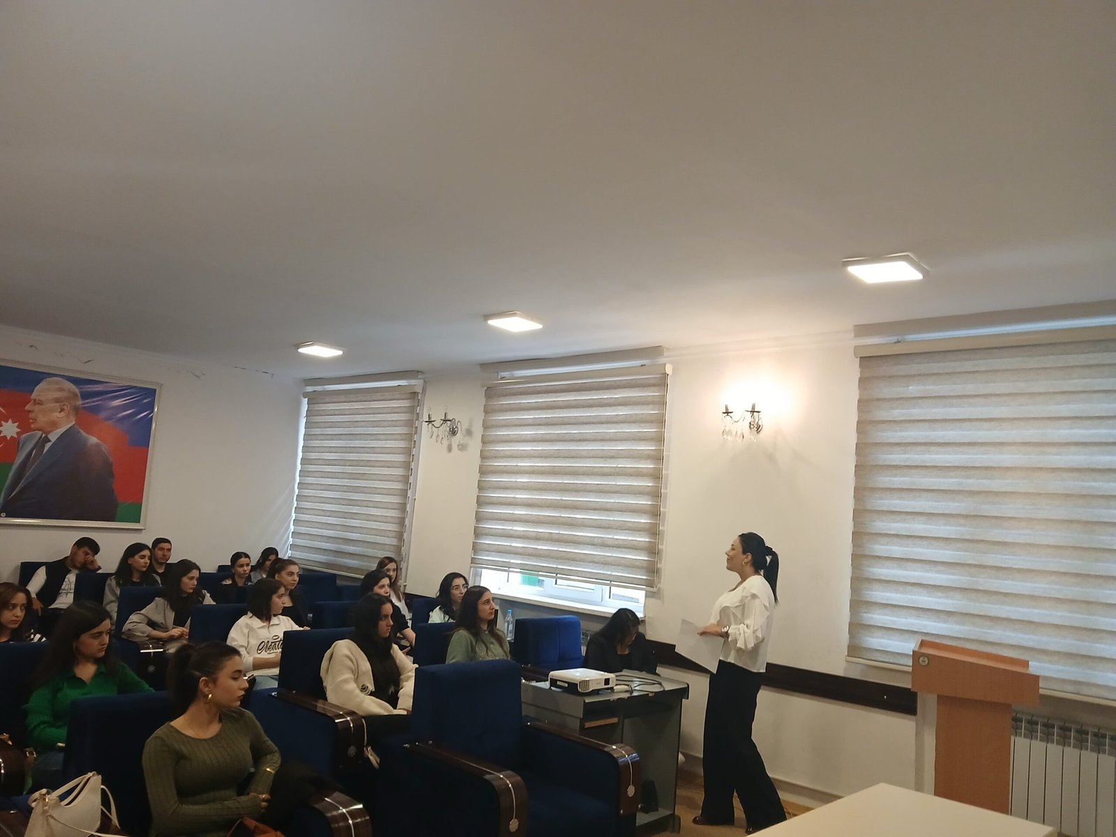 MDU-nun Tələbələrlə iş və tədbirlərin təşkili şöbəsinin müdiri İlhamə Məmmədova çıxış edərək, tələbələrin universitetdən kənar mövzularda da maarifləndirilməsi, onlara düzgün istiqamətləndirmə verilməsi və təhsil prosesində daha aktiv olmalarının vacib olduğunu vurğulayıb. Tələbələrə universitetin təklif etdiyi imkanlar, kurslar, təlim proqramları və elmi tədqiqat fəaliyyətləri barədə geniş məlumat verilib. Bu proqramların onların gələcək peşəkar həyatlarında necə əhəmiyyətli ola biləcəyi qeyd olunub.