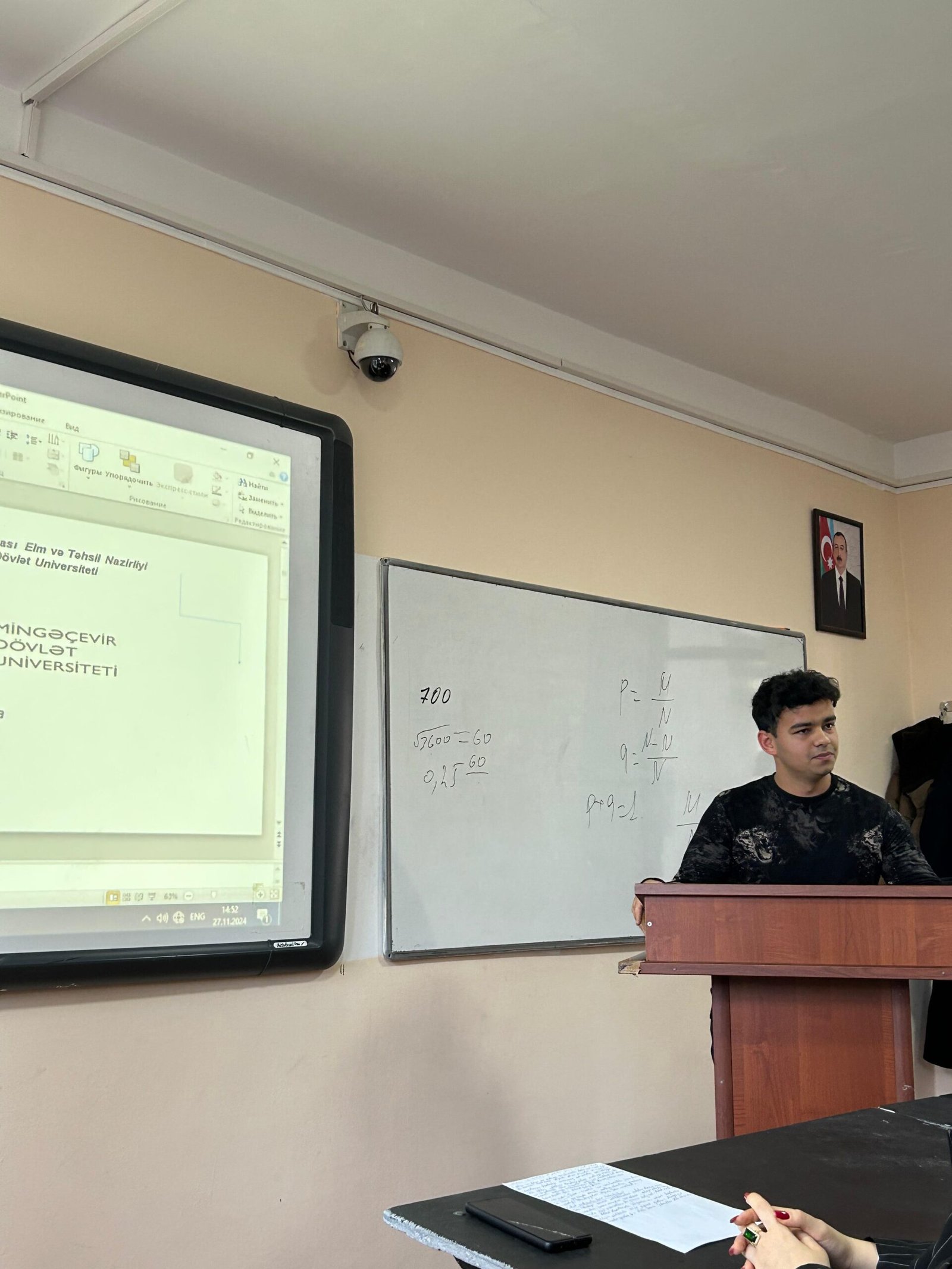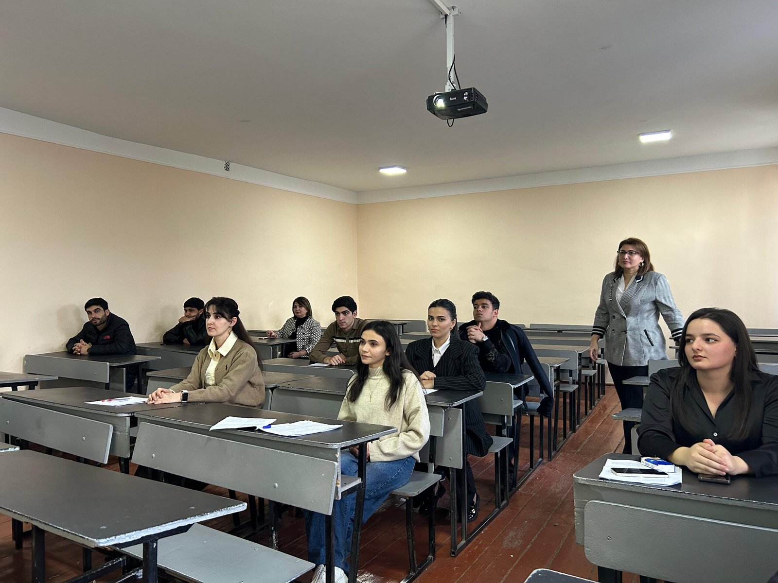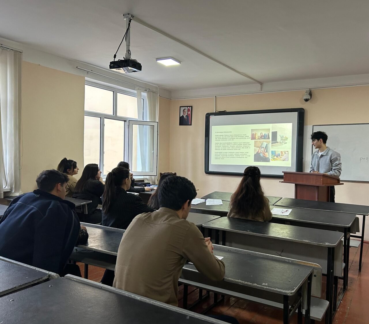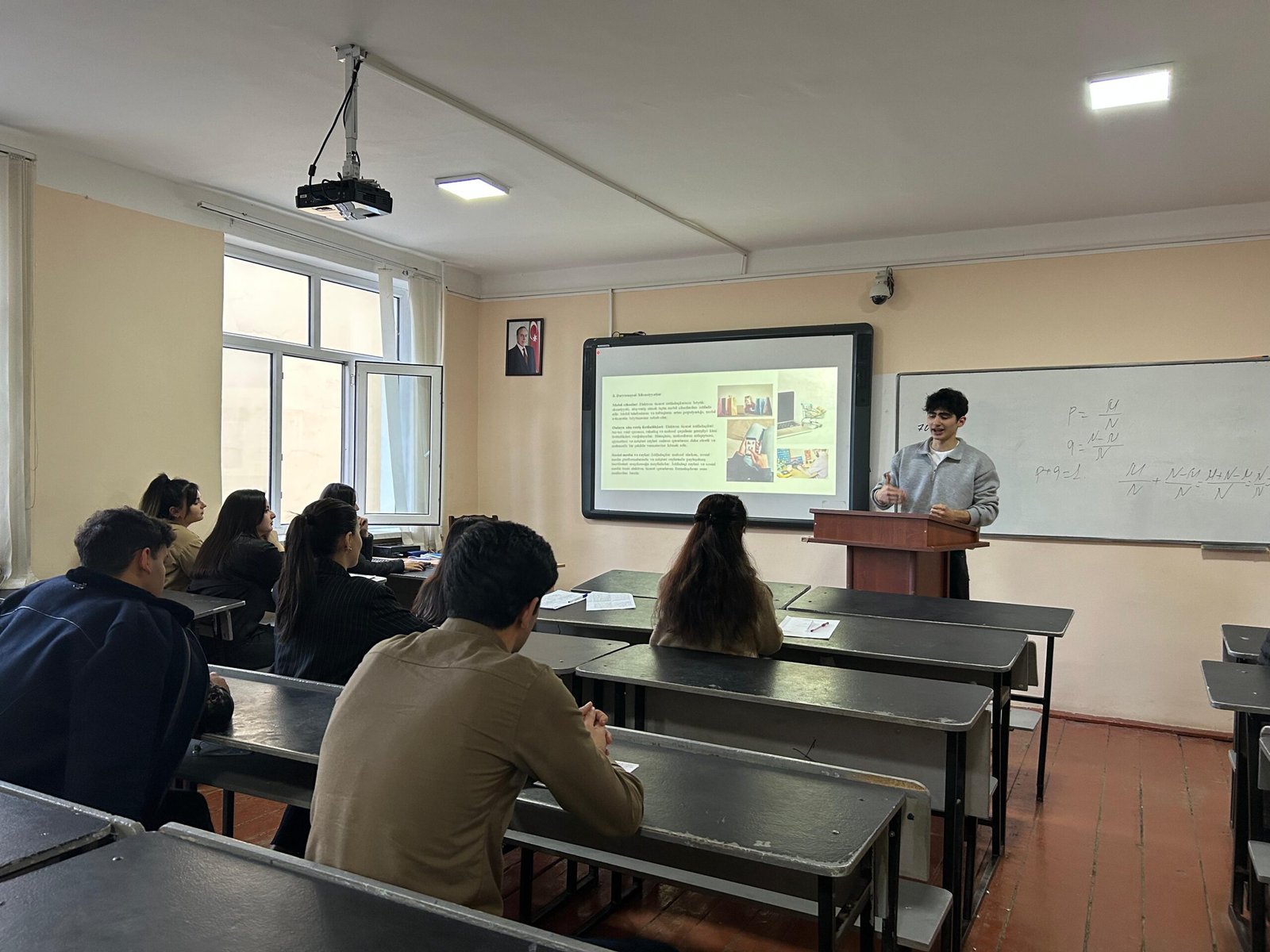 Sonra fənn müəllimi Yeganə Məmmədli tələbələrə mövzular üzərindən müxtəlif suallar ünvanladı. Tələbələr verilən sualları ətraflı cavablandırdılar. Öz növbəıərində tələbələr hazırladıqları slaydlar vasitəsilə öyrəndikləri mövzular haqqında dərsdə cavab verdilər və müəllim tərəfindən qiymətləndirildilər.