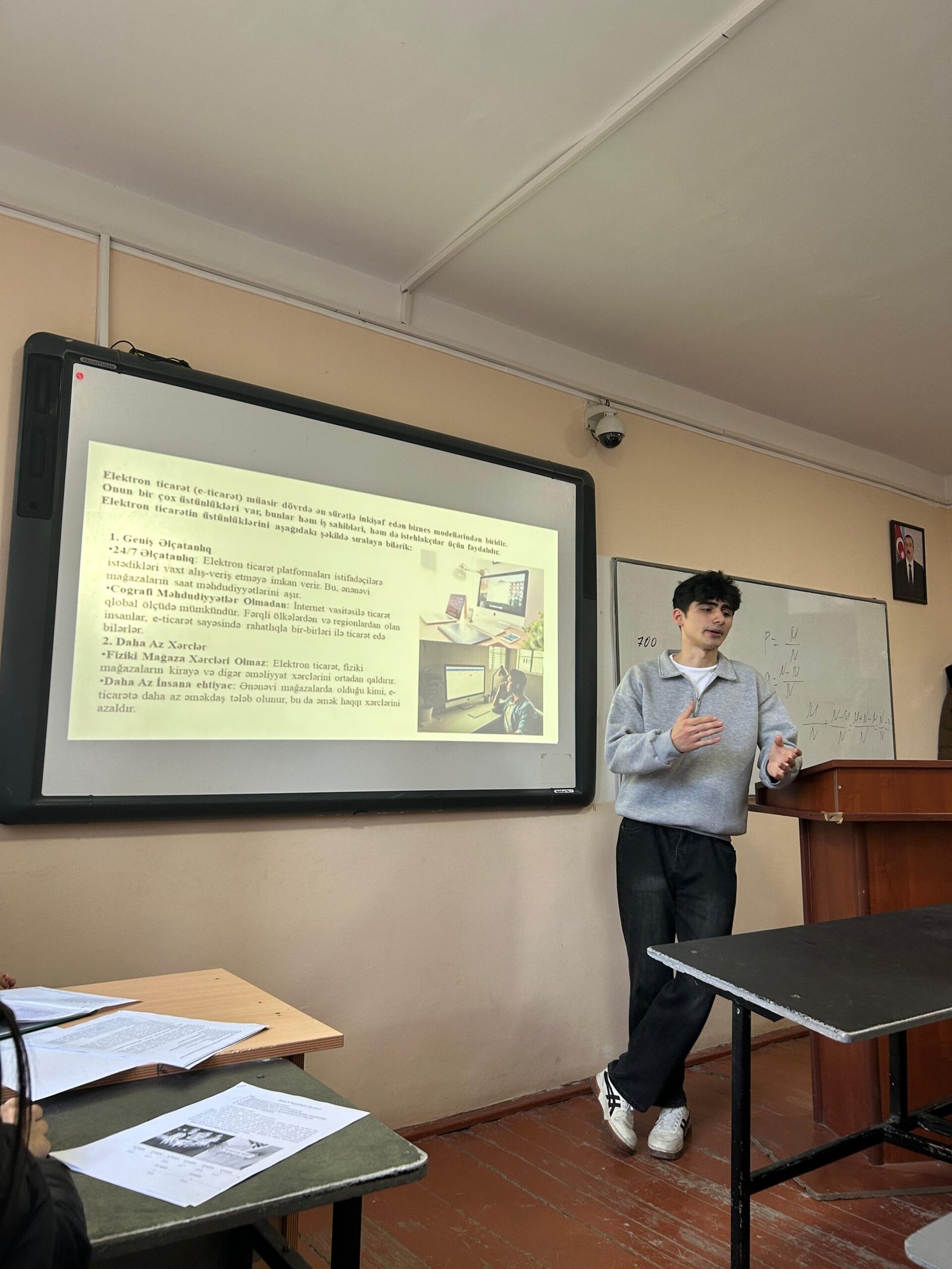 Daha sonra Yeganə Məmmədli Elektron ticarət və onun növləri. Dünyada elektron ticarətin mövcud vəziyyəti. Dünya təcrübəsində elektron ticarət istifadəçilərinin xüsusiyyətləri. Azərbaycanda elektron ticarət bazarının mövcud vəziyyəti. Elektron ticarətdə vergitutma haqqında da tələbələrə geniş izahat verdi.