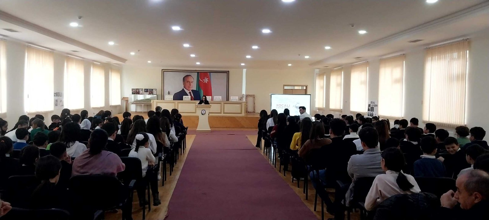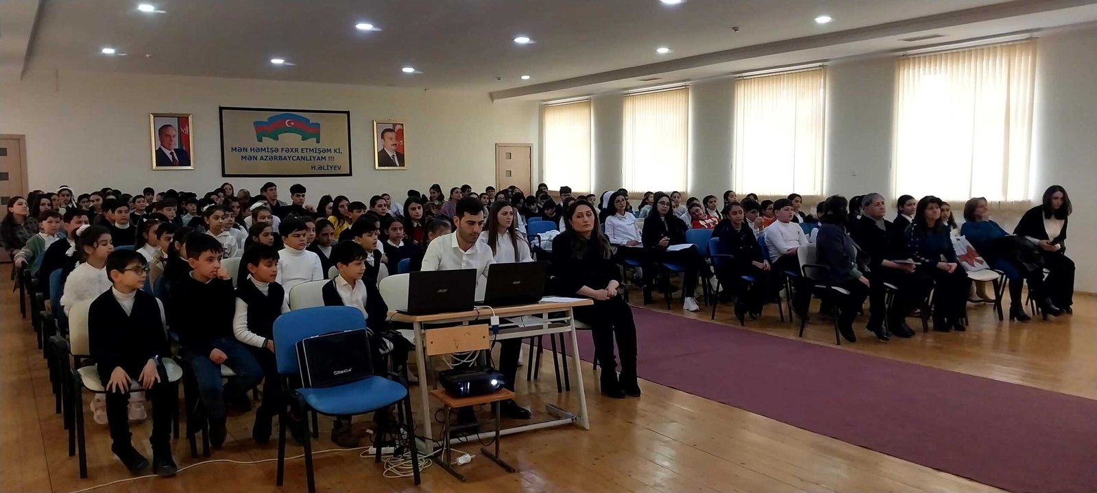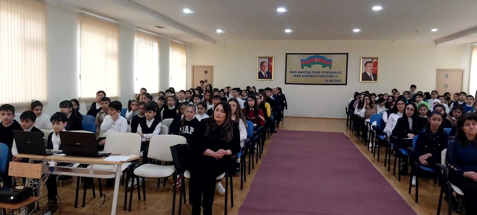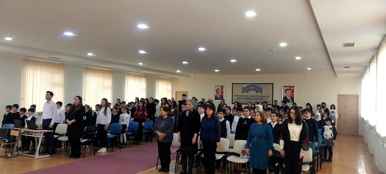 Məktəblilərə vətənpərvlik ruhunun aşılanması, Xocalı həqiqətlərinin çatdırılması məqsədi daşıyan konfrans soyqırımı zamanı həlak olanların və torpaqlarımızın bütövlüyü uğrunda canından keçən qəhrəman şəhidlərimizin əziz xatirəsinin bir dəqiqəlik sükutla yad edilməsi ilə başlayıb.
