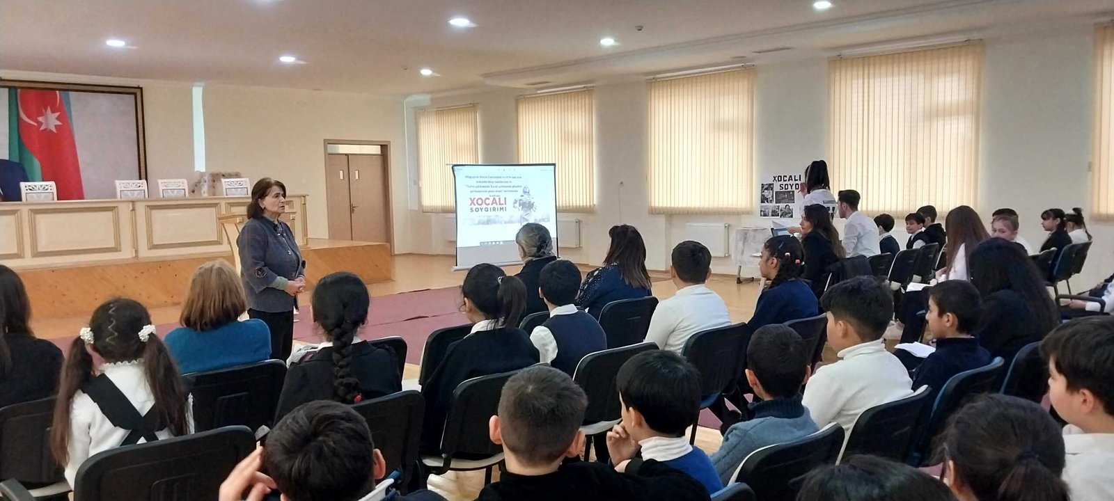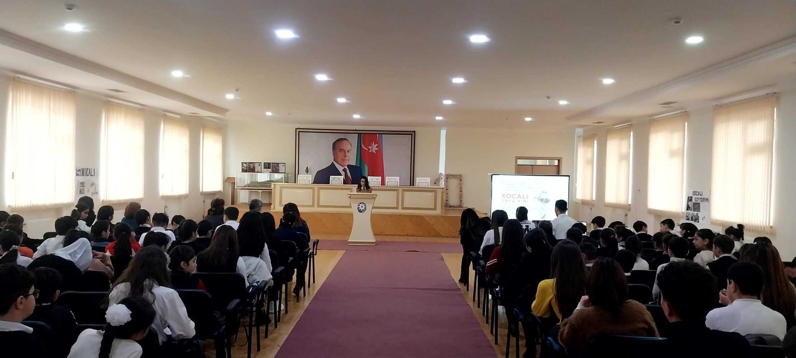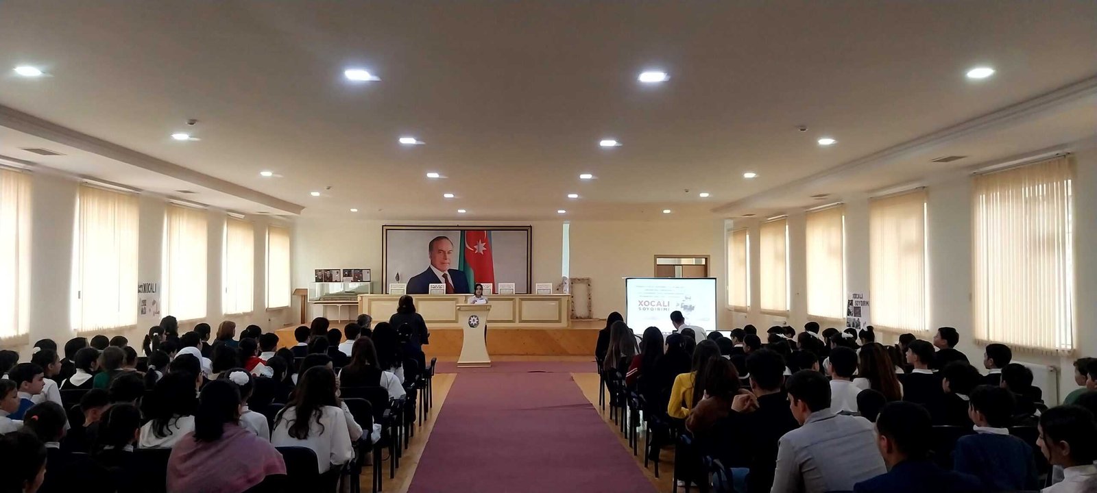 Konfransın açılışında çıxış edən məktəbin direktor müavini Xuraman İbrahimova tədbirin tələbə və şagirdlərin birgə təşəbbüsü əsasında keçirilməsini təqdirəlayiq addım olduğunu qeyd edib. Direktor müavini bəşər tarixinin ən dəhşətli qanlı cinayətlərindən olan Xocalı qətliamından 31 il ötməsinə baxmayaraq xalqımıza qarşı törədilmiş amansız və qəddar faciənin eyni acı və kədər hissləri ilə xatırlandığını bildirib, soyqırımı zamanı həlak olmuş həmvətənlərimizə Allahdan rəhmət diləyib.