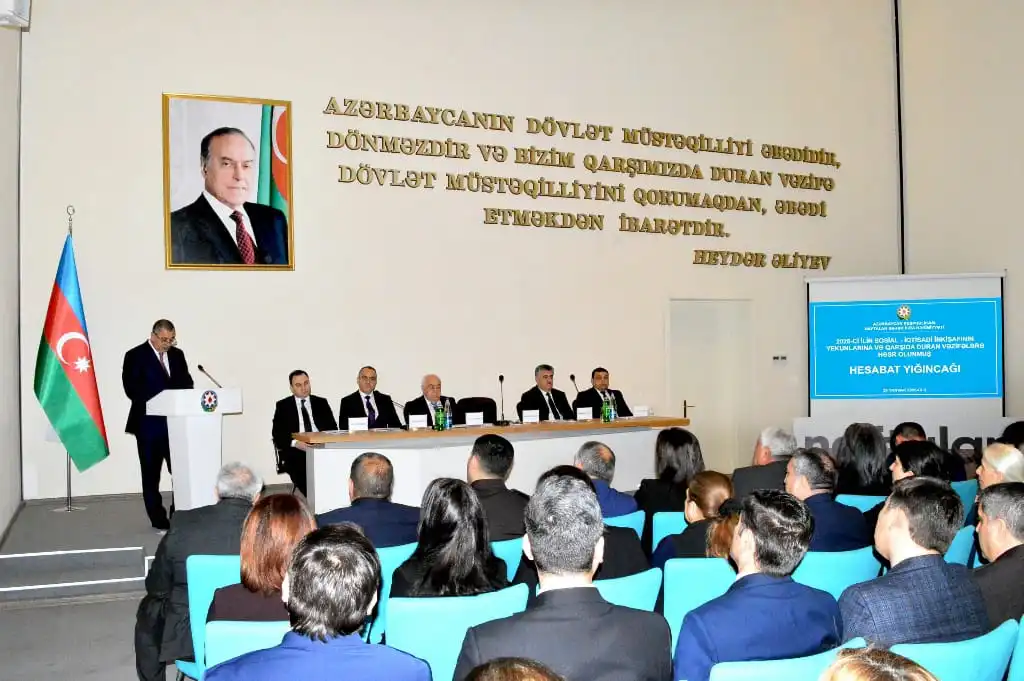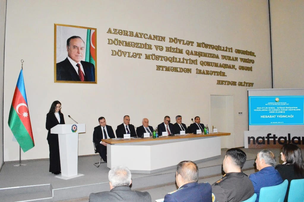 Naftalan şəhər Heydər Əliyev Mərkəzində 2025-ci ilin sosial-iqtisadi inkişaf göstəricilərinə dair hesabat yığıncağı keçirilib. Tədbirdə Naftalan Şəhər İcra Hakimiyyətinin müvəqqəti başçısı və Sosial-iqtisadi, memarlıq-tikinti və şəhər təsərrüfatı şöbəsinin müdiri Arzu Məmmədov, Azərbaycan Respublikası Prezidentinin Administrasiyasının Ərazi-təşkilat məsələləri şöbəsinin 3-cü ərazi sektorunun müdiri Vəfadar Bağırov, Yeni Azərbaycan Partiyası Naftalan şəhər təşkilatının sədri Rövlan Heydərov, hüquq-mühafizə orqanlarının və yerli idarə, müəssisə və təşkilatların rəhbərləri, Şura üzvləri, ərazi nümayəndələri və ictimaiyyət iştirak edib.