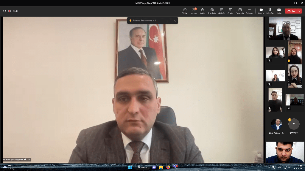 “Microsoft Teams” platforması üzərindən onlayn formatda baş tutan “Açıq qapı” günündə MDU-nun rektoru Şahin Bayramov tələbə, magistrant və onların valideynləri ilə görüşüb. Görüşdə universitetin inzibati heyət üzvləri də iştirak ediblər.