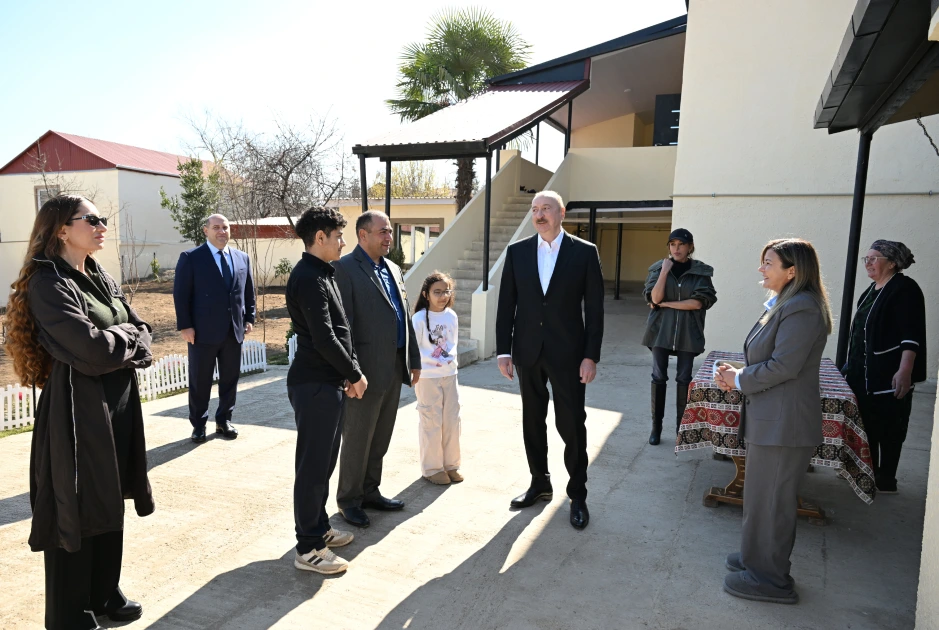 Səfər çərçivəsində Prezident İlham Əliyev, birinci xanım Mehriban Əliyeva və qızları Arzu Əliyeva kəndə qayıdan ailələrdən Rizvan İbrahimovun evində yaradılmış şəraitlə tanış olublar və ailə üzvləri ilə söhbət ediblər.