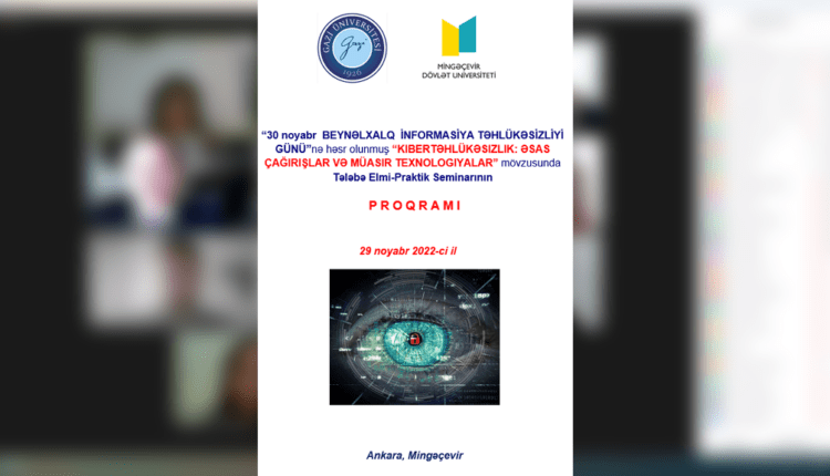 2022-ci ilin 29 noyabr tarixində Mingəçevir Dövlət Universiteti (MDU) və Türkiyənin Qazi Universitetinin birgə təşkilatçılığı ilə “İnformasiya təhlükəsizliyi günləri” çərçivəsində “Kibertəhlükəsizlik: əsas çağırışlar və müasir texnologiyalar” mövzusunda tələbə elmi-praktik seminarı keçirilib.