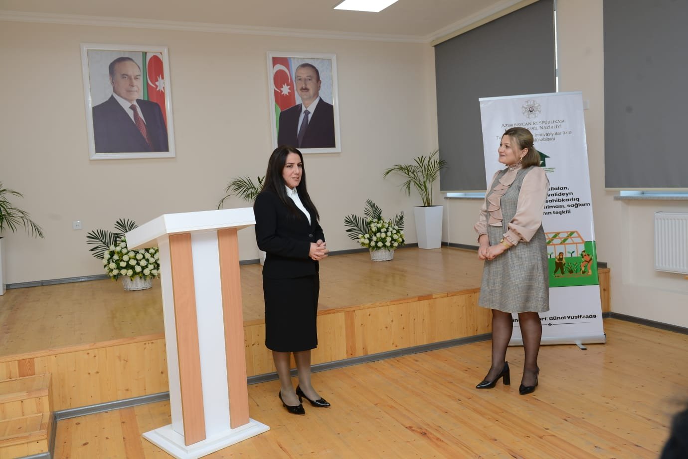 Xaldan kənd kompleks tam orta məktəbinin direktoru Günel Yusifzadə tədbir iştirakçılarını salamlayaraq ilk öncə məktəb haqqında ətraflı məlumat verib.  1975-ci ildən Xaldan kənd orta məktəbində istixananın fəaliyyət göstərdiyini, şagirdlərin burada tərəvəz yetişdirdiyi, tədris-təcrübə sahəsi kimi istifadə etdiyini diqqətə çatdırıb. 1986-cı ildən məktəbin “kompleks məktəb” statusu aldığını və elə o vaxtdan məktəbdə quşçuluq, heyvandarlıq, meyvəçilik təsərrüfatlarının yaradıldığını bildirib.