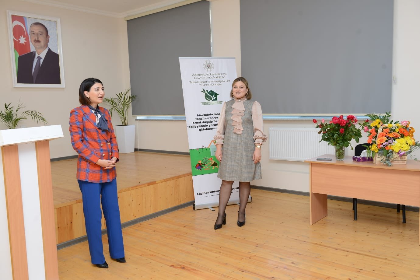 Sonra sözügedən layihənin eksperti, layihələr üzrə təlimçi və ekspert, Abral Academy tədris mərkəzinin müəllimi, media nümayəndəsi  Aynur Quliyeva Elm və Təhsil Nazirliyinin elan etdiyi “Təhsildə İnkişaf və İnnovasiyalar üzrə 7- ci qrant” layihələrinin təhsilin inkişafı, şagirdlərin sosial maarifləndirilməsi ilə yanaşı, məktəblərdə maddi texniki bazanın gücləndirilməsinə verdiyi töhfələrdən bəhs edib. Layihə çərçivəsində görüləcək işlər barədə məlumat verib.