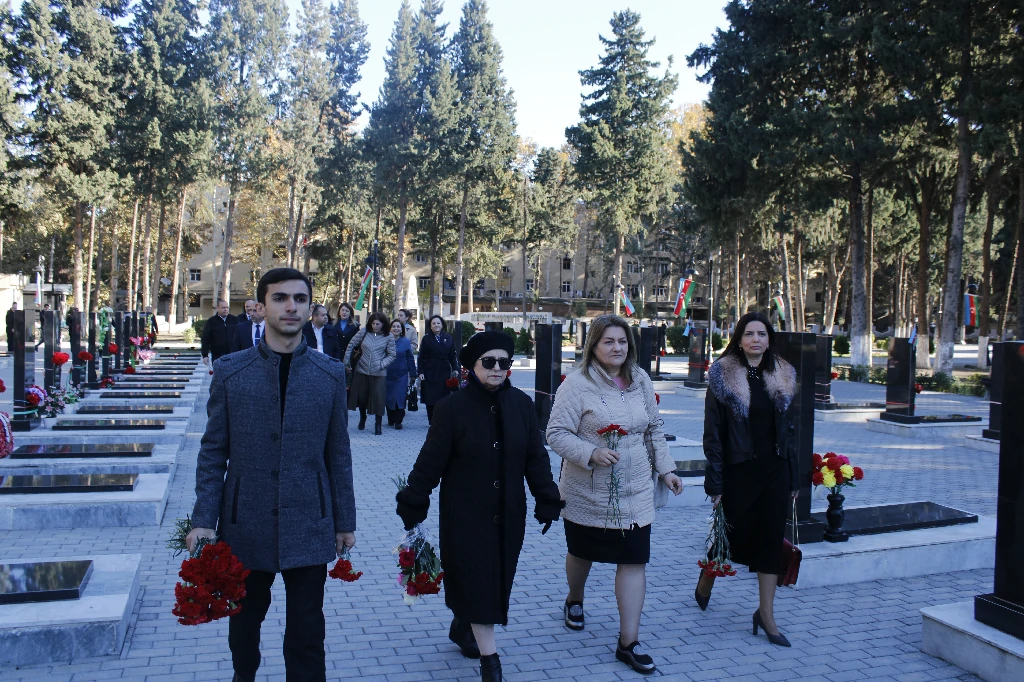 “Zəfər Günü” münasibətilə Mingəçevir Dövlət Universitetinin əməkdaşları Şəhidlər Xiyabanını ziyarət ediblər
